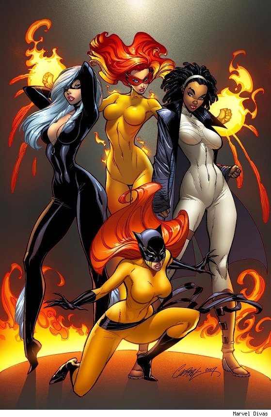 For most superheroines, superpowers seem to come with a supermodel body and bustage that defies gravity (recognized as the Most Common Super Power). Unless they’re teen-heroes, any one of them is a potential Victoria’s Secret or Sports Illustrated Swimsuit model. But let’s be fair; almost without exception, all male superheroes could profitably moonlight as Chippendales dancers.
