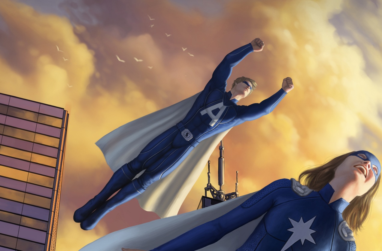 We love the new cover for Wearing the Cape. It’s delightful that Astra is laughing as she flies through the air. You can feel her joy.