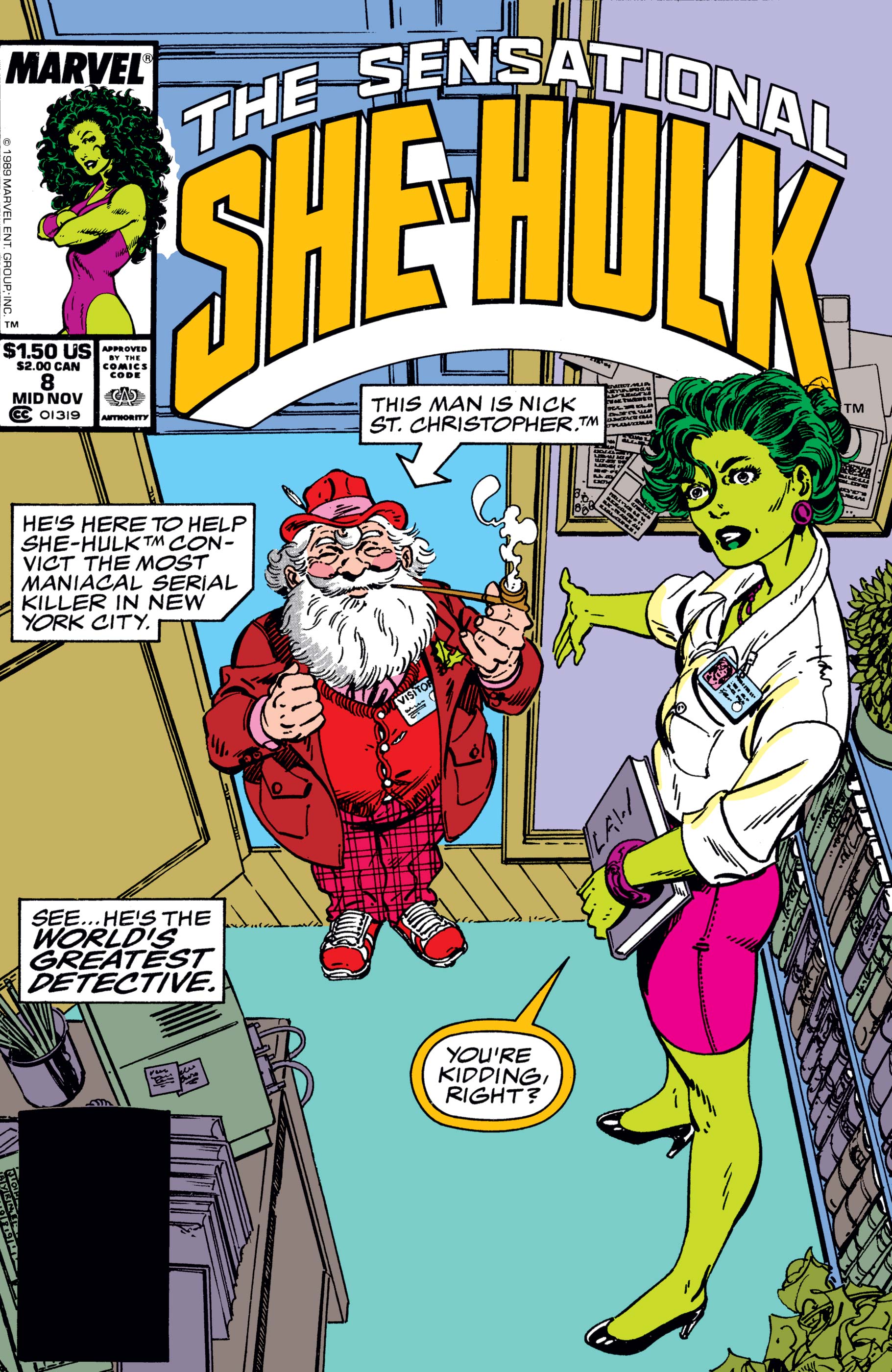 Yes, Jennifer Walters also shared an adventure with that “right jolly old elf.” I’m sure the Disney series isn’t going to go that far, but my point is She-Hulk was silly and fun. Again, I’m really only talking about the Byrne run here; She-Hulk has been portrayed more seriously by other writers, especially when in other comics. Her original portrayal was much more serious. Compare these two #1 covers.